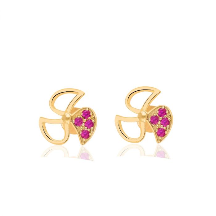 Golden Leaf Earrings with Pink Diamond Cut Zircon for Women and Girls | Elegant and Beautiful Accessory for All Occasion & Outfit | Studs Gold Plated 925 Silver