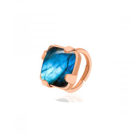 Square Labradorite Signet Rhodium Plated Silver Ring